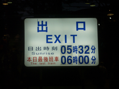 3時半にモーニングコール、4:00には宿を出て、4:30発の日の出列車に乗り込み、祝山展望台へ。